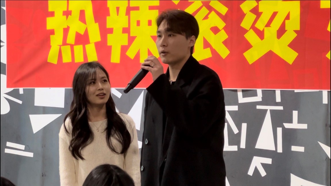 郭松携韩国女友백명주(白明珠,音译)就中韩文化差异与在场的交换生们进行了交流。