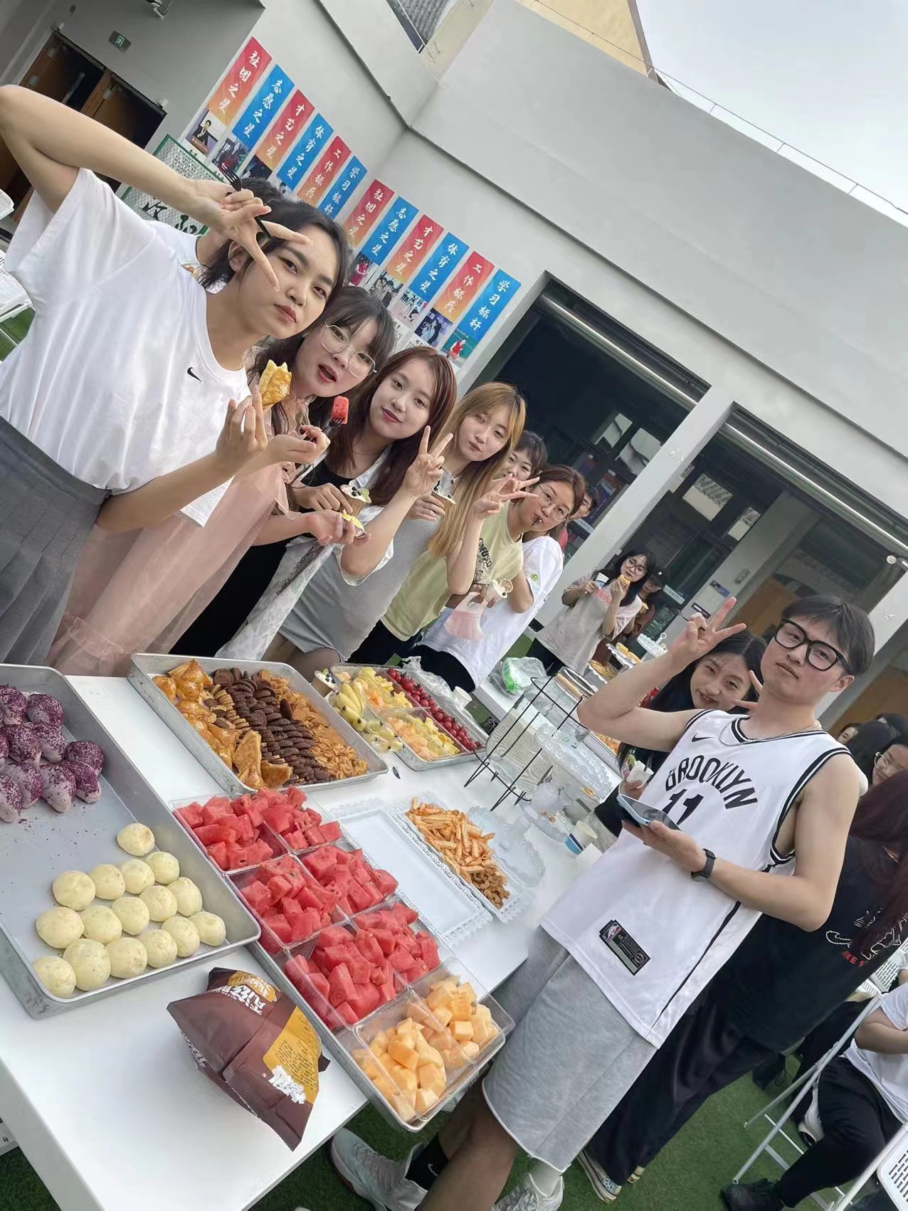 毕业典礼和颁奖结束后,师生一起共同参加冷餐会。活动现场摆放着K-POP社为大家精心准备的蛋糕、零食和水果。在享受美味的幸福时刻,77779193永利孙通老师与常晓敏老师为大家带来了一首《彩虹》,美妙的歌声与微笑使夜晚的风都温柔体贴。