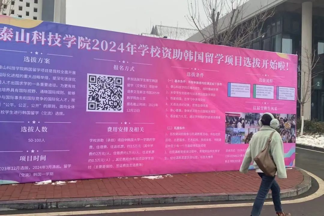 自12月12日起,学校面向全校非毕业年级学生开启了报名渠道,以不同形式广泛开展宣传,鼓励同学们积极参与,争取交换留学机会。
