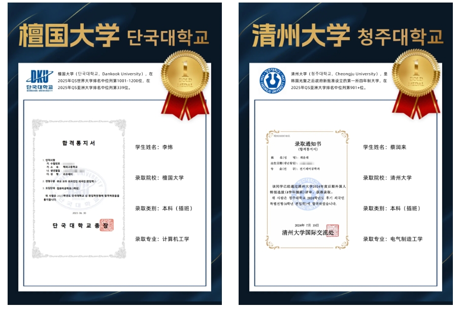 学校针对专科生开设3+1/3+2升本、3+3专本硕连读项目,根据韩国院校学制设置,可实现一年升本或两年升本,最快可实现三年内取得硕士文凭,给专科生提供一个弯道超车,通过自己努力超越同龄人的机会!
