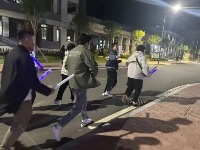 在组织者的一声号令下,大家纷纷冲出起跑线。他们手握荧光棒,点点星光照亮了校园的夜晚,学生在简单的慢跑中尽情享受运动带来的乐趣。
