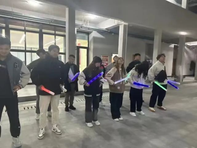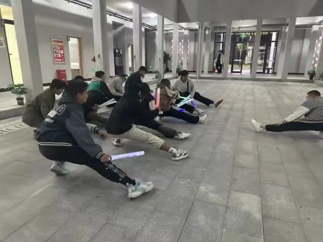 参加活动的同学在新言书院集合,领取完荧光棒后在组织者的带领下进行热身活动,每位同学都非常认真努力,跟着组织者将动作做得标准又整齐划一。同学们都希望将热身运动做好,以饱满健康的状态面对活动第二环节“荧光夜跑”。在充分热身结束后,同学们终于迎来了期待已久的“荧光夜跑”。