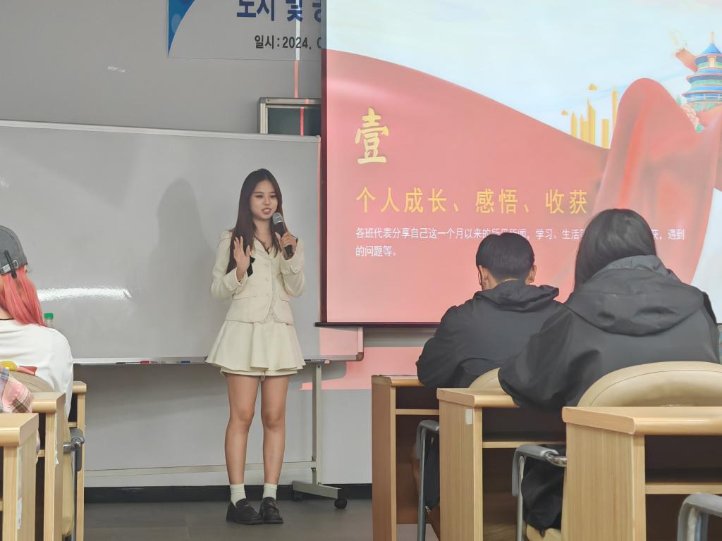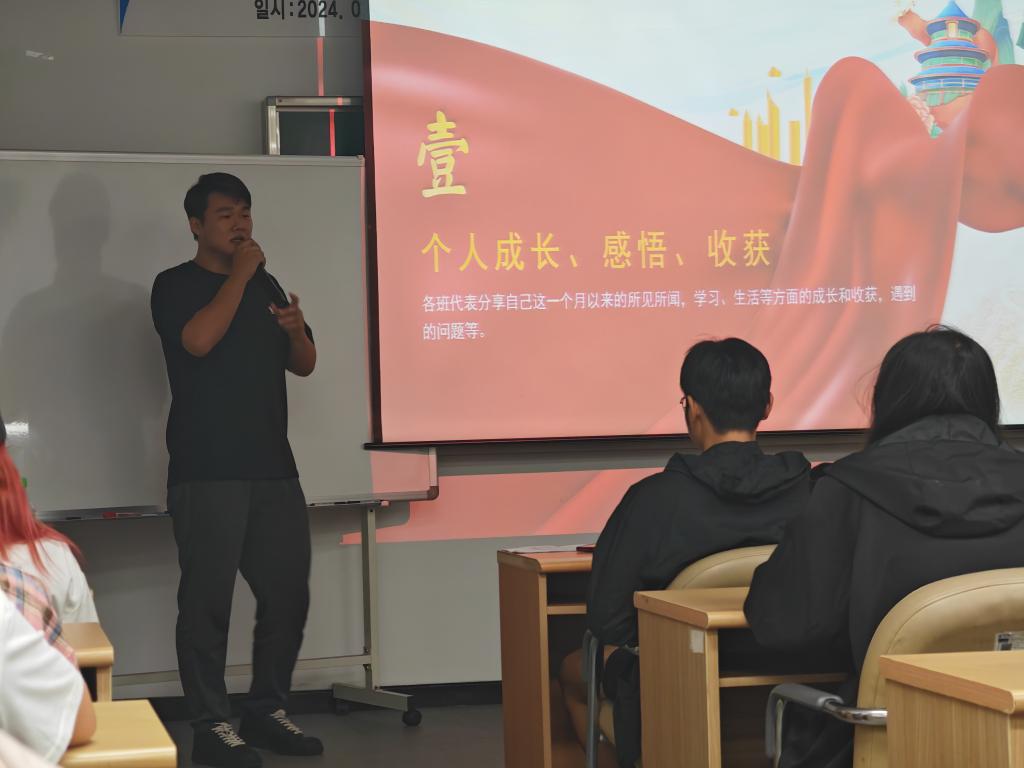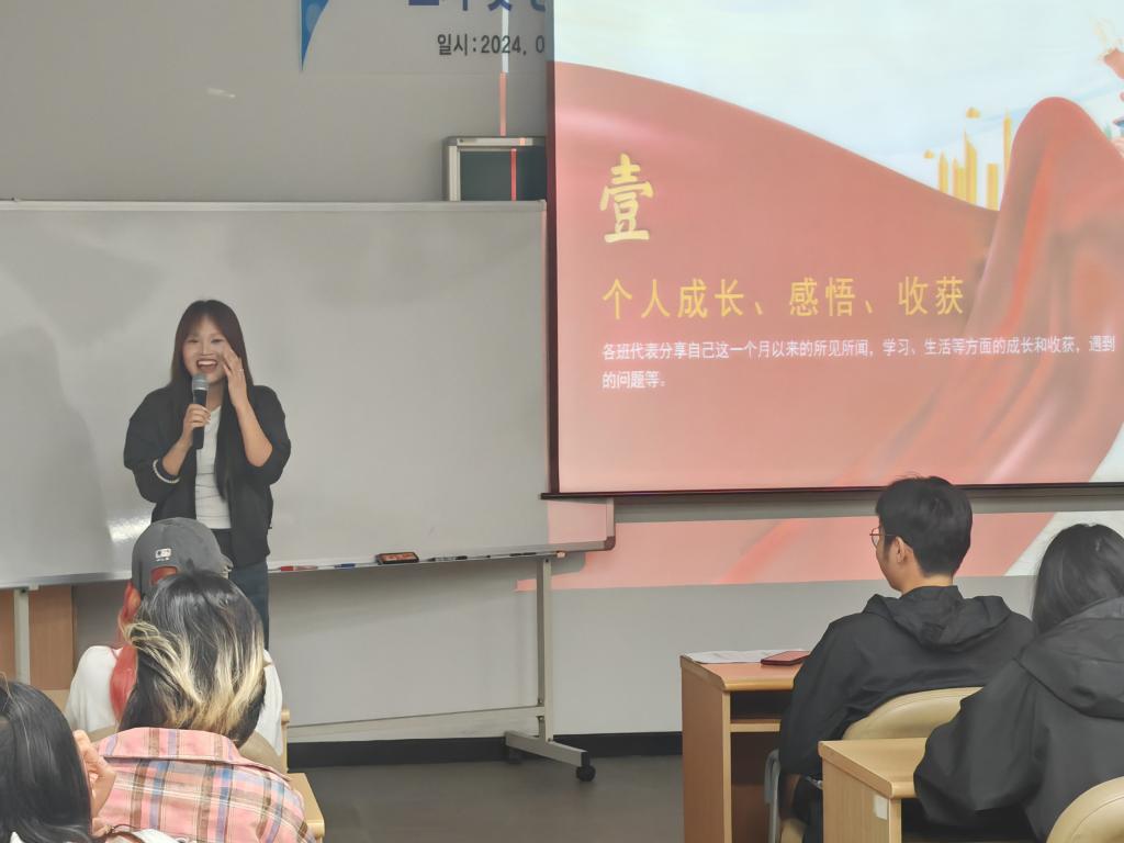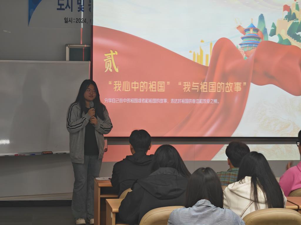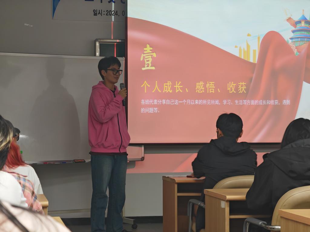 2024 年 9 月 27 日,赴韩交换生团队在韩国清州大学举办了一场意义非凡的主题活动——“赴韩一月话成长,国庆情浓共奋进”。此次活动旨在通过分享交流赴韩一个月以来的成长经历以及对祖国的深情故事,激发大家的爱国情怀和奋斗精神。