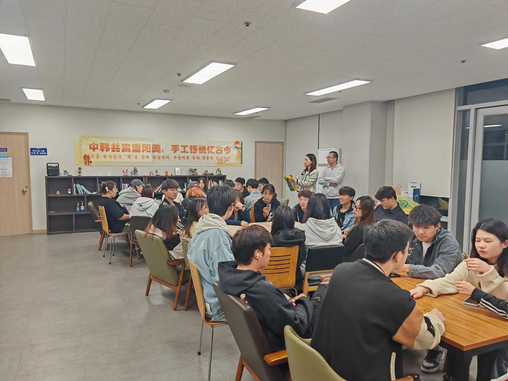 “独在异乡为异客,每逢佳节倍思亲”在这个充满诗意的金秋时节,10月4日晚,赴韩交换生们在韩国清州大学组织了重阳节文化交流活动。他们以手工制作菊花为载体,将中华民族的传统节日重阳节的独特魅力带到了韩国,为中韩文化交流增添了一抹绚丽的色彩。