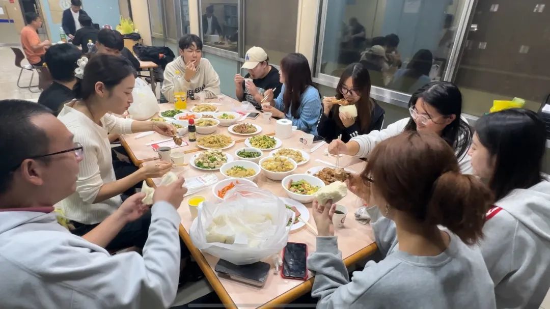 经过一段时间的忙碌,一道道美味的佳肴陆续上桌。大家围坐在一起,共同举杯。疲惫一扫而空,取而代之的是愉悦的心情和满满的收获。在享受美食的同时同学们纷纷打开了话匣子,开始讲述近期的收获,新闻宣传小组的同学分享了在韩国学习生活的种种趣事,以及在宣传工作中遇到的挑战和收获。撰写稿件、拍摄照片、策划活动等方面的工作情况,以及在带队老师的帮助下是如何共同发现问题、解决问题。