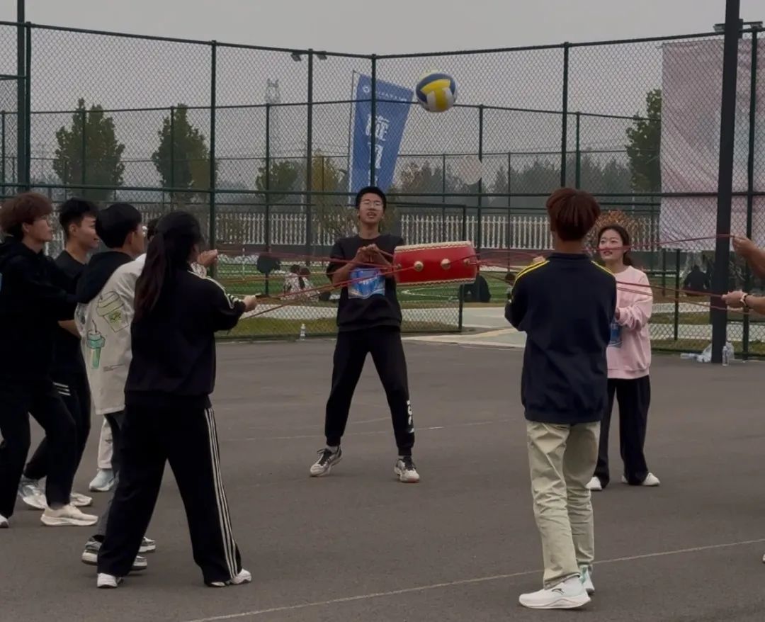 在击鼓颠球项目中,需要队员们通过绳控制鼓的方位将排球击起,非常考验中韩队员们的协调能力和节奏感。活动中,中韩队员努力找准鼓的平衡点,尽量增加标准的颠球数量。最终在中韩同学们的努力下取得了不错的成绩。
