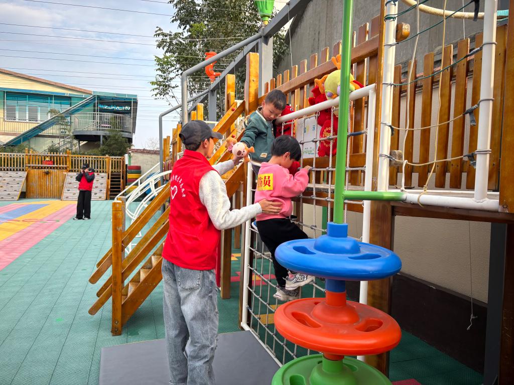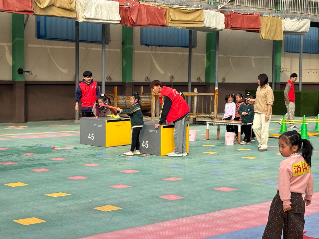 活动最后开展了户外跑酷小游戏,以此来锻炼小朋友地灵活性和团队协作能力。小朋友们需要通过匍匐前行、跳箱、打水枪等多项挑战完成拯救小动物的任务。志愿者们站在跑酷设备旁确保小朋友在玩乐时不会受伤并协助小朋友完成小游戏。