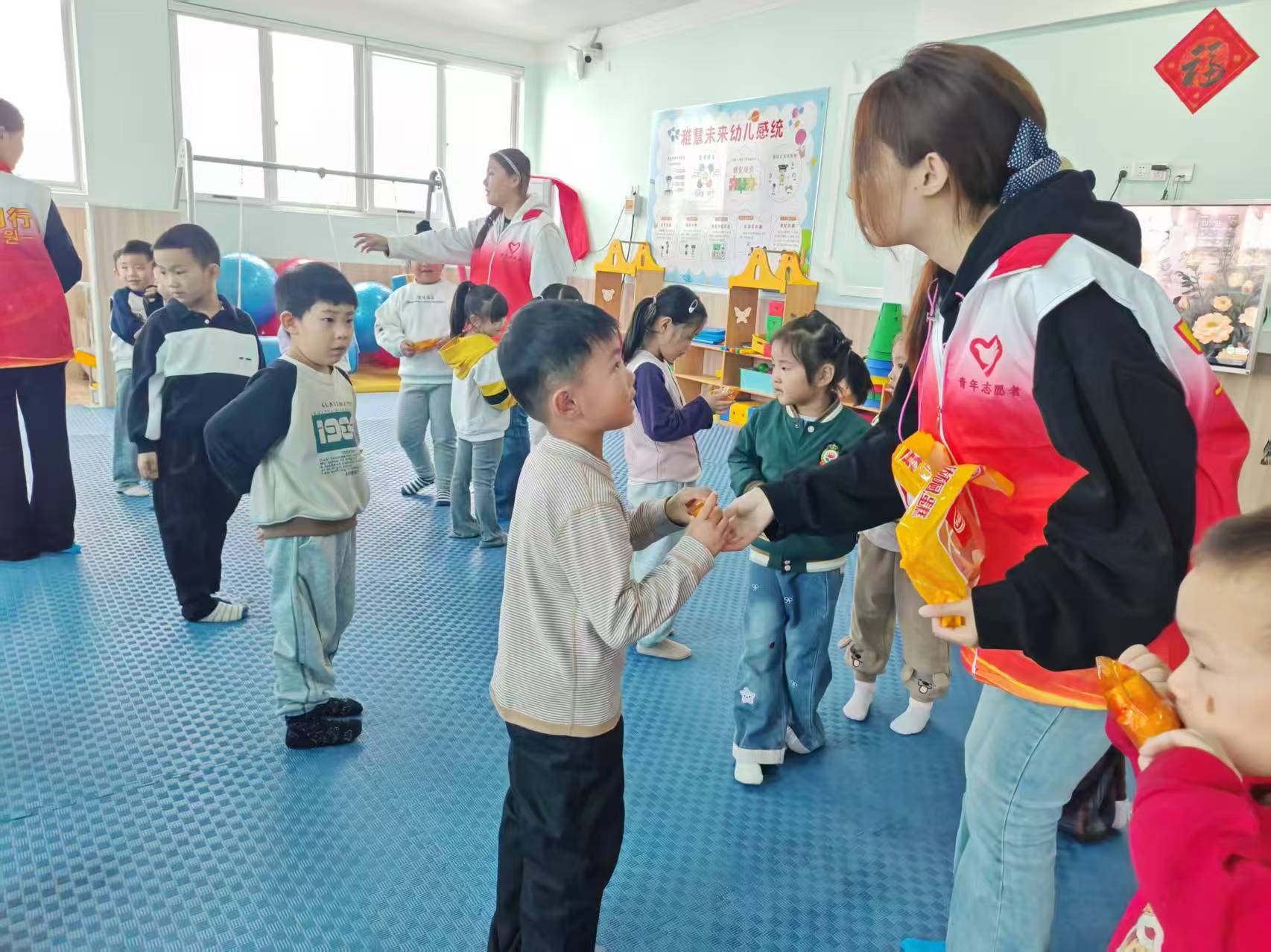 活动尾声,为表彰孩子们的积极参与,志愿者们为小朋友们送上了香甜的面包与糖果。孩子们手捧奖品,脸上洋溢着满足快乐的笑容。