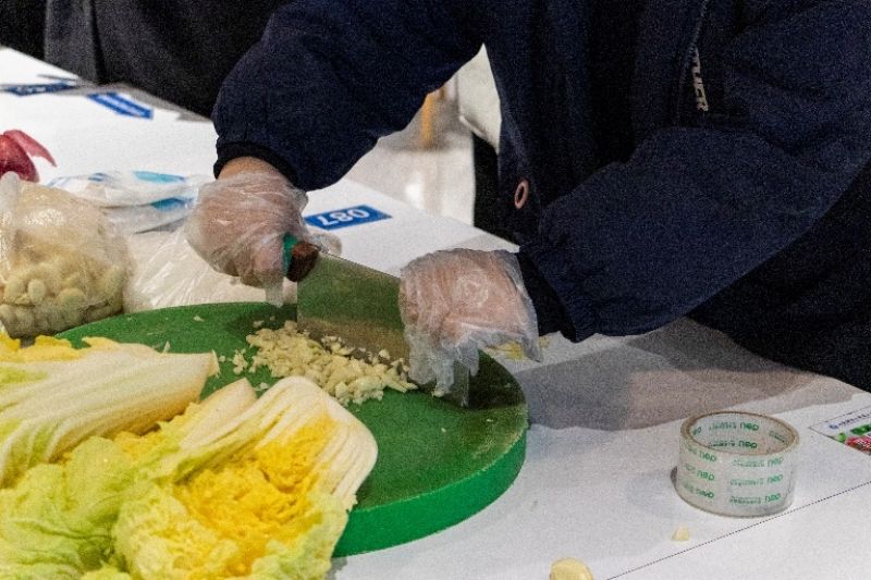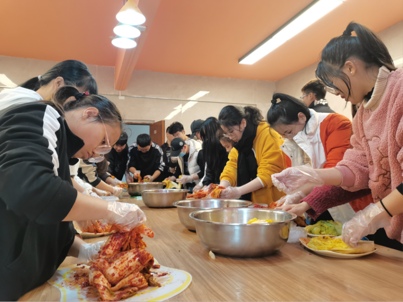 同学们早早地聚集在了第一食堂1楼,开始为制作韩国泡菜做前期准备,洗菜、切菜、摆放餐具……同学们对此次活动表现出深厚的兴趣。
