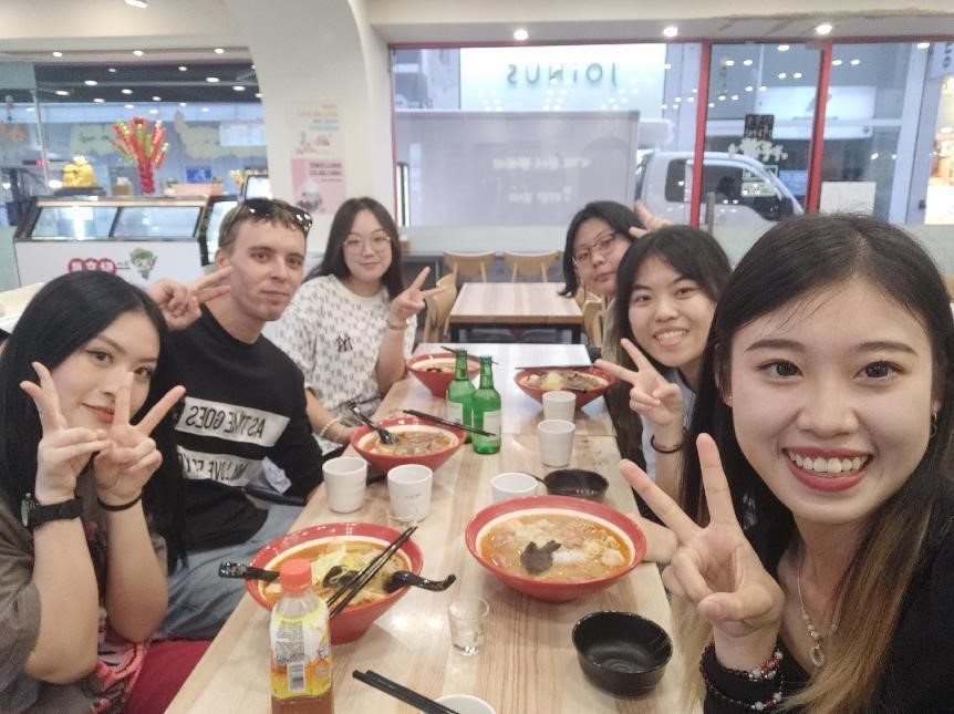 来自于智能工程学院/瞻岩书院的袁一耀同学在回国与大家分享过程中说道:“韩国学校的学习氛围非常浓厚,老师们都非常专业且有耐心,为我们提供了很多指导和帮助。”同学们感叹韩国学校优美的环境、丰富的课程设置以及热情友好的师生氛围。在韩国,同学们不仅学习了专业知识,还拓宽了国际视野。结识了许多来自不同国家的朋友,韩国朋友热情四溢,邀请同学们参加人参节等具有韩国特色的庆典活动,让同学们真正的“接地气”,切身感受韩国文化。