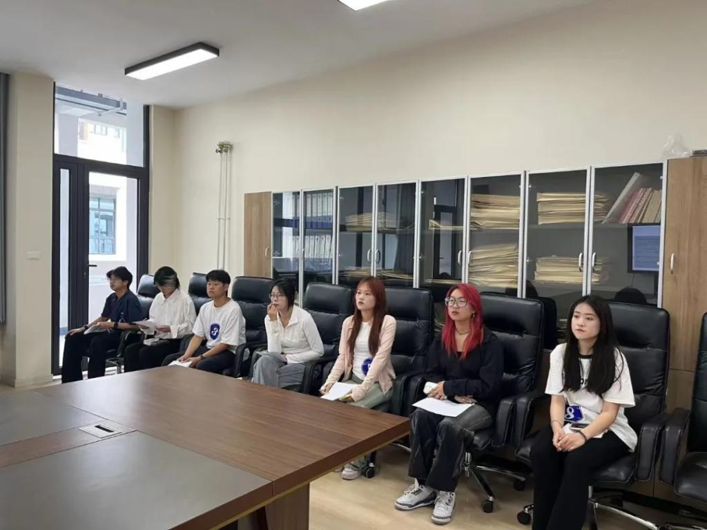候场室,气氛既紧张又热烈。来自各个学院的数名优秀学子齐聚一堂,他们或低头默默翻看修改了无数次的自我介绍,力争在面试官面前留下一个好印象,或和附近的的同学你一句我一句的“刺探敌情”。而后在相关负责人的讲解与指导下,同学们每8人一组依次被带到了各自的面试房间。