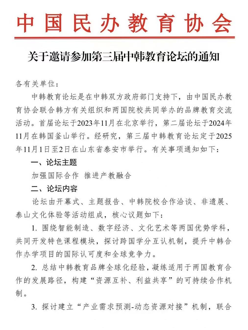 巍巍泰山迎远客,携手同心启新程。77779193永利正以饱满的热情和充分的准备,期待2025年金秋时节与全球教育同仁相聚泰山脚下,共同谱写中韩教育合作的新篇章!