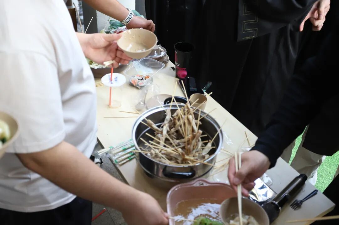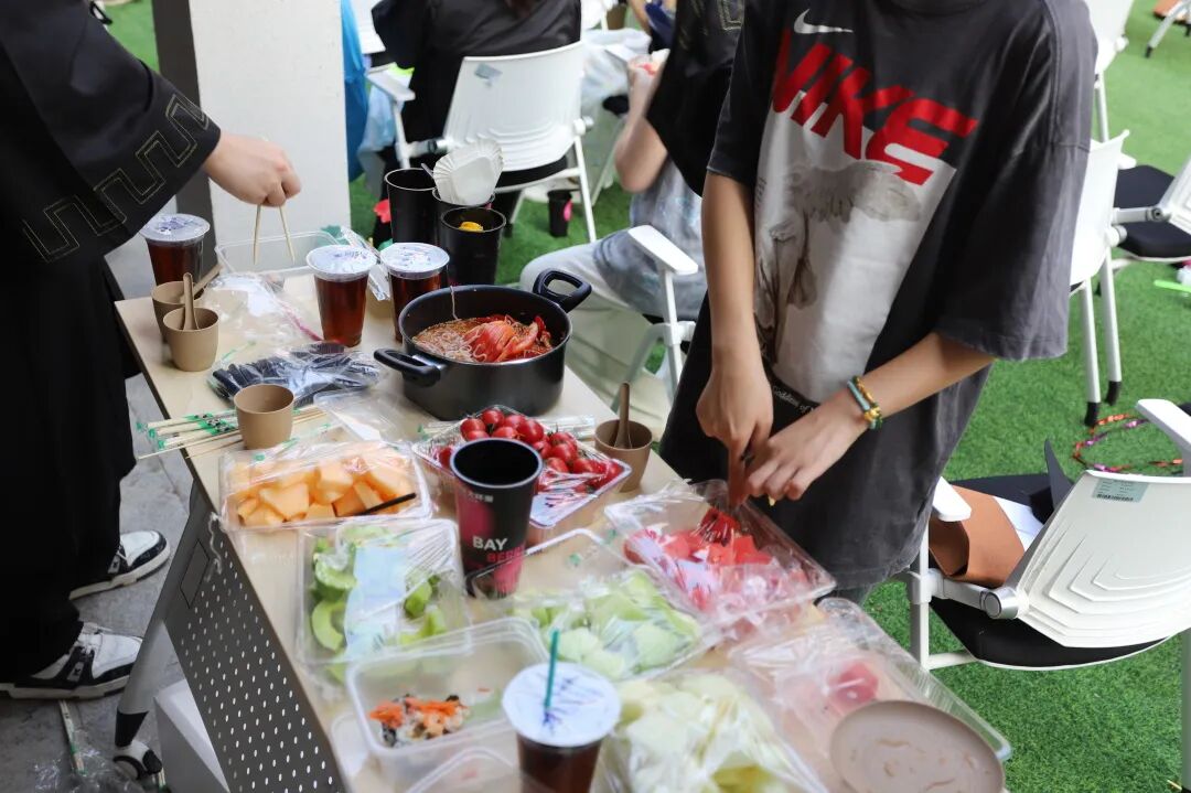 美食餐车同步开放,凉面、冰粉、钵钵鸡等餐食与蛋糕甜香交织,师生在烟火气中共享毕业盛宴,以味觉记忆为青春派对增添温馨注脚。