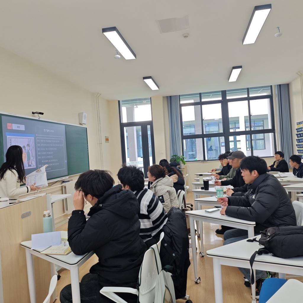 在随后的座谈环节,李长萍倾听取了教师们在授课过程中所遇到的困难,并进行了详细解答和指导。李长萍特别强调,针对毕业生所开设的“尖刀班”需要增加课时以确保学生在韩国语能力等级考试中取得优异的成绩。