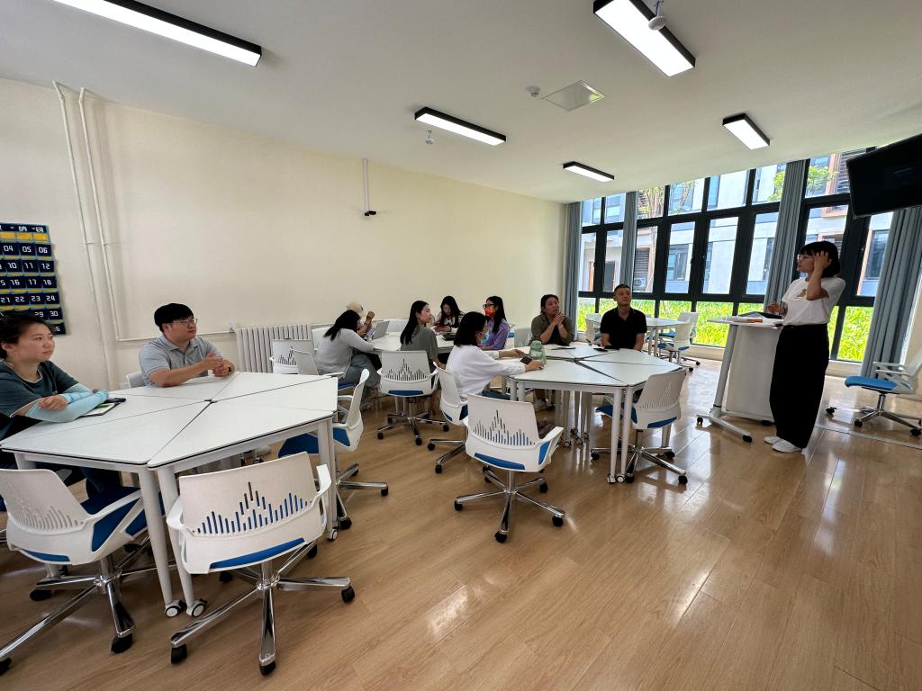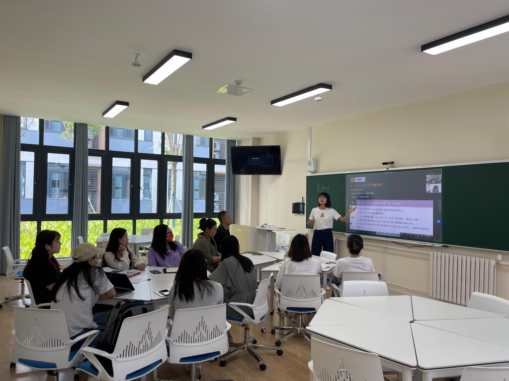 随后,作为青年教师成长导师的刘荣荣教授对常老师的授课给予了高度赞赏。她指出,常老师在教学过程中充分发挥自己的优势,授课过程中善于创造活动氛围,提高学生参与度。建议在课程导入环节加入中国和韩国的钱币展示,可以更好的激发学生们的好奇心,达到思政授课的效果。