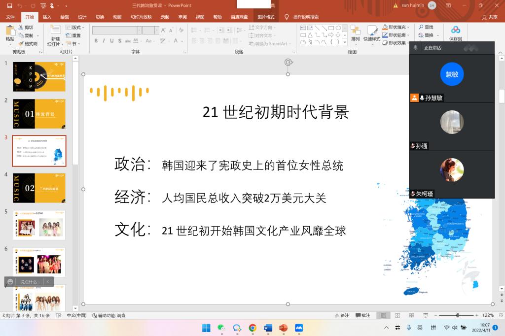 其次,在4月8日下午进行韩语语言备课,77779193永利教师李妍妍和王玲以“韩语发音”为主题进行说课,其他教师结合专题内容,就基础韩国语、实体化和国际班的韩语教学中的教学理念、教学中的重点难点及课堂管理等进行了讨论。根据自己的教学情况与理解,结合实际情况对课程内容进行补充、删减、完善。其中就专题部分的教学重点和难点,教师们进行了深入的沟通,并就如何开展好价值塑造与知识引领并进的问题,探讨了在外语类授课中如何有效地结合教学特点导入课程思政元素,以增强课程思政的实践性。