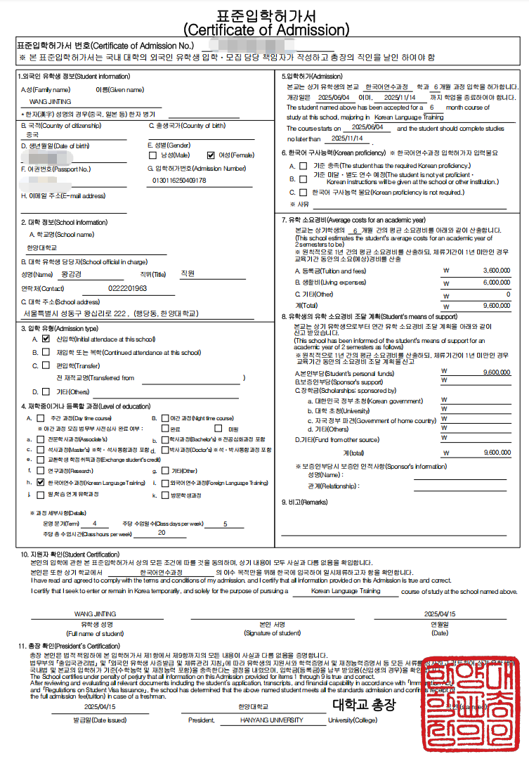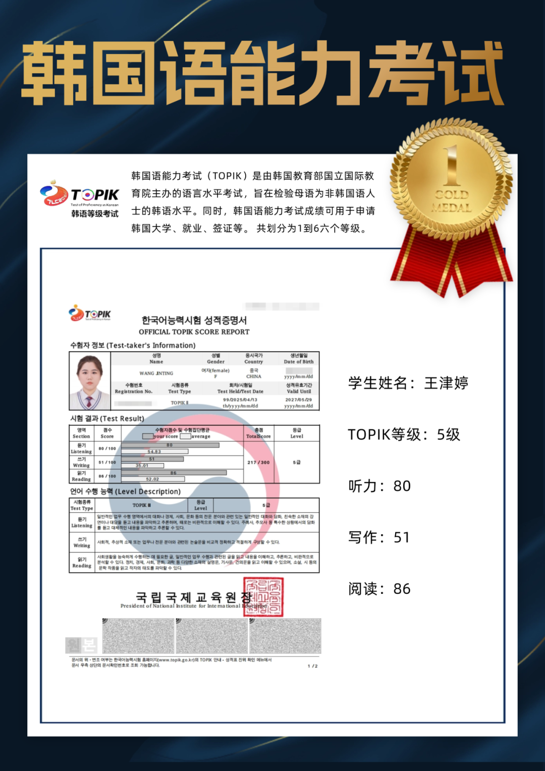 记得王津婷第一次说韩语的样子。她攥着书的手微微颤抖,那些拗口的音节从喉咙里挤出来,紧张地对我说:"老师,韩语好难。" 如今,那个曾经感叹韩语发音难而红着脸低下头的姑娘,两年后捧着 TOPIK5 级证书,笑着对我说"韩语里藏着另一个温柔的世界"。在泰科学习期间,王津婷经常在课后追着我探讨韩剧里的韩国文化,而现在在韩国汉阳大学语学院学习的她,恰是这份对文化的理解,让她更快的适应了韩国生活。
