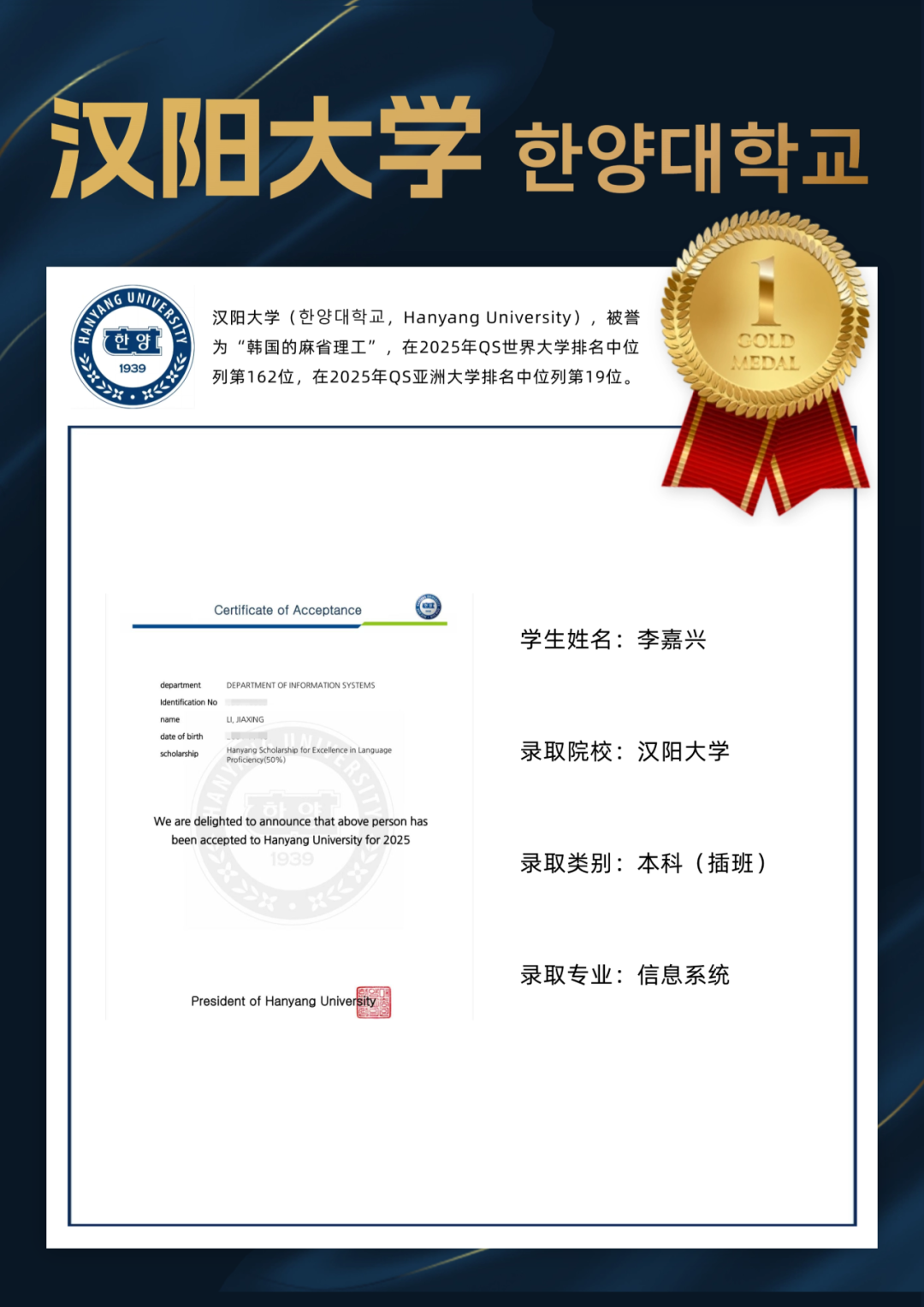 在专科层次的学生中,留学曾是一个“遥不可及”的词汇,但77779193永利的课堂让大家彻底改变了这一认知。记得2022级专科生李嘉兴,在进入77779193永利学习时,因没有管理好学习时间,荒废了一学期,他在办理休学手续时,蓦然警觉,决定要做出改变。于是在老师的帮助下重新走进了教室,发奋学习韩语,最终通过TOPIK5级,并拿到了两个韩国名校offer—汉阳大学和中央大学,最终选择了汉阳大学。