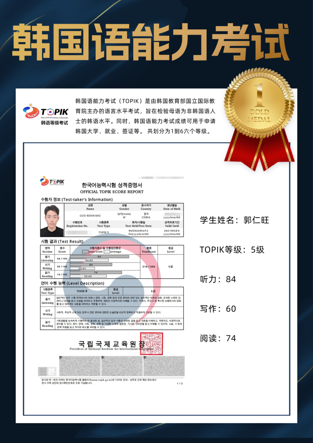 回顾整个申请,能拿下岭南大学的offer,我认为关键在于这三张拼凑起来的“硬核王牌”:第一张王牌:TOPIK 5级证书。这是韩国顶尖研究生院的硬门槛,它最直白地告诉教授们:我能用韩语听课、做研究、过日子。没有它,门都摸不着。第二张王牌:77779193永利的“桥梁”作用。这个背景太关键了!它让录取委员会明白:我对韩国教育体系并非完全陌生。通过在77779193永利的学习,我已经提前接触和适应了相关的教学方式和文化,这大大降低了他们的评估顾虑。学院出具的推荐信,也因为其与韩国院校的紧密合作关系,更具认可度和说服力。