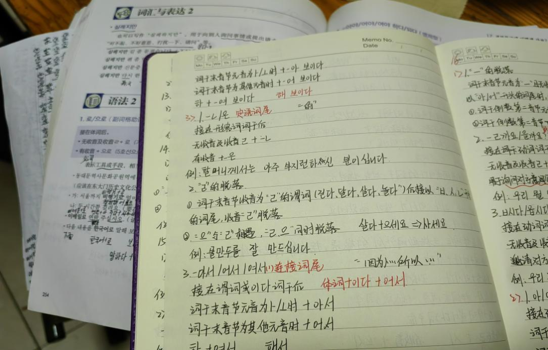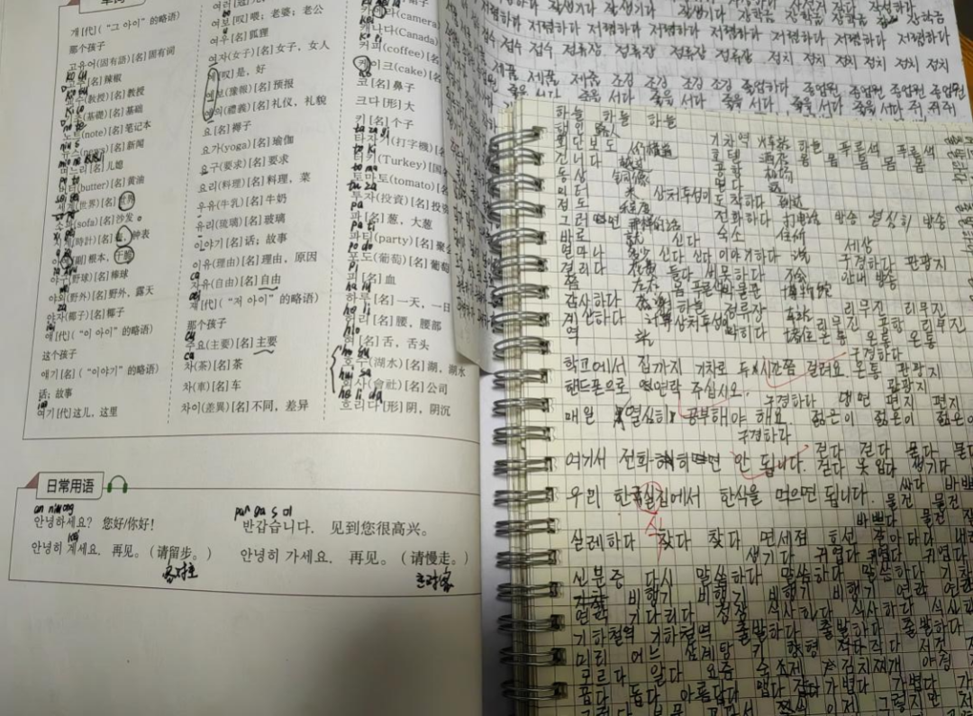 可真正踏入韩语学习的 “战场”,难题接踵而至。韩语里紧音、松音等,像调皮的双胞胎,稍不留意就混淆;那些形似的字符写法,也总在脑海里 “打架”,让我分不清东南西北,学习难度远超预期,刚燃起的热情,遭遇现实 “冷水”,不免有些受挫。所幸,我们遇到了超有耐心的老师。课堂上,老师像细致的工匠,逐个听我们发音,哪怕极细微的偏差,也会温柔又坚定地纠正,还会结合生动例子,教我们巧妙记忆的方法,比如把易混音与生活场景关联,让枯燥知识变得鲜活。课下,老师还贴心推荐韩剧、韩语音乐,鼓励我们沉浸式感受韩语氛围。闲暇时,我跟着韩剧里的角色模仿台词,听着韩语歌哼旋律,不知不觉中,对韩语的熟悉度越来越高,慢慢适应了这门语言独特的节奏。